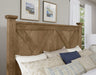 Vaughan Bassett Yosemite California King Panel Bed in Natural. Inspired by aged barn doors the, "X" Bed is crafted from Solid Oak featuring a unique combination of natural and hand distressing.