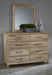 Vaughan Bassett Dovetail Landscape Mirror in Sun Bleached White 754-446. Vaughan Bassett has developed a patent-pending process that allows them to accelerate how wood ages. We have kept the splits; knots; cracks; and the bold grain pattern found in Oak lumber to create this reclaimed look in this beautiful and unique bedroom.