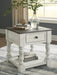 With its richly rustic finish and textural mix, this end table goes to town on bygone beauty. Distressed two-tone treatment blends a weathered gray with vintage white for an utterly charming effect. Robust legs lend a hearty, substantial look that feels right at home.