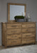 Vaughan Bassett Dovetail 8-Drawer Dresser in Natural 752-002. Vaughan Bassett has developed a patent-pending process that allows them to accelerate how wood ages. We have kept the splits; knots; cracks; and the bold grain pattern found in Oak lumber to create this reclaimed look in this beautiful and unique bedroom.
