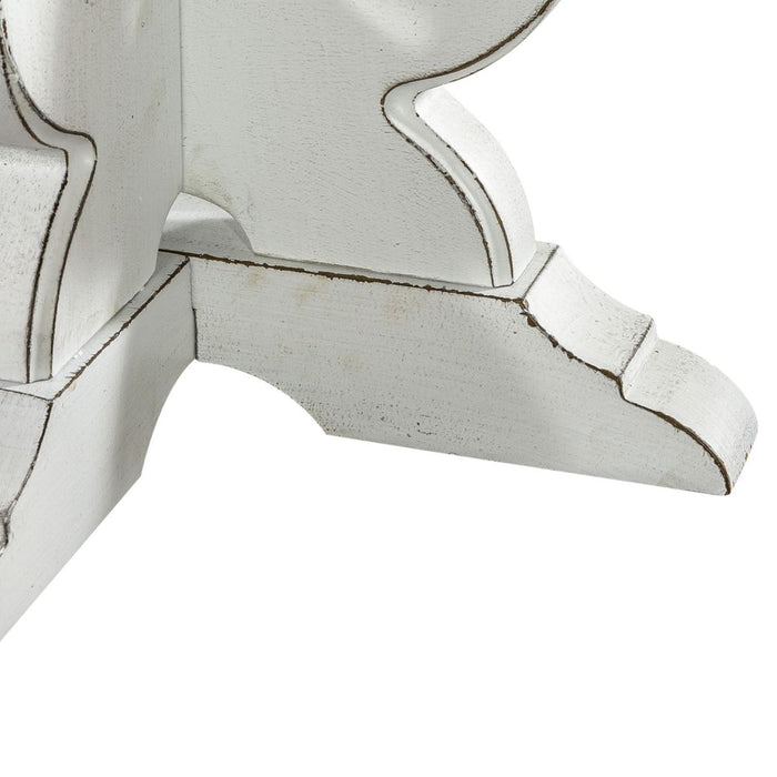 Liberty Magnolia Manor Round End Table in Antique White 244-OT1022. Accent your space with the perfect blend of European design with the Magnolia Manor round end table. Crafted of poplar solids with white oak and birch veneers, this piece features a fancy face top finished in a weathered brown with whitewash, and unique scrolled pedestal base with bracket feet. Warm antique finishes and artistic distressing along with grand scale create a piece to be passed to generations.